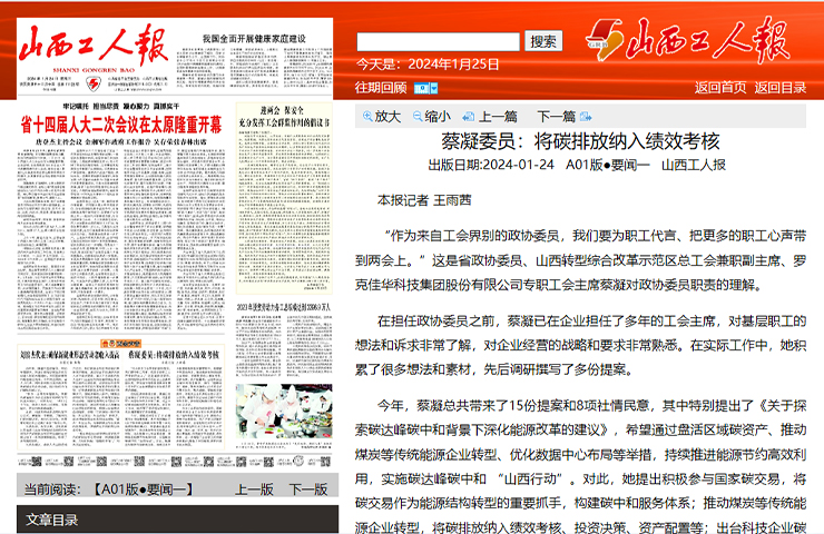 蔡凝委員:將碳排放納入績效考核 “作為來自工會界別的政協委員,我們要為職工代言、把更多的職工心聲帶到兩會上。”這是省政協委員、山西轉型綜合改革示范區(qū)總工會兼職副主席、羅克佳華科技集團股份有限公司專職工會主席蔡凝對政協委員職責的理解。 了解更多